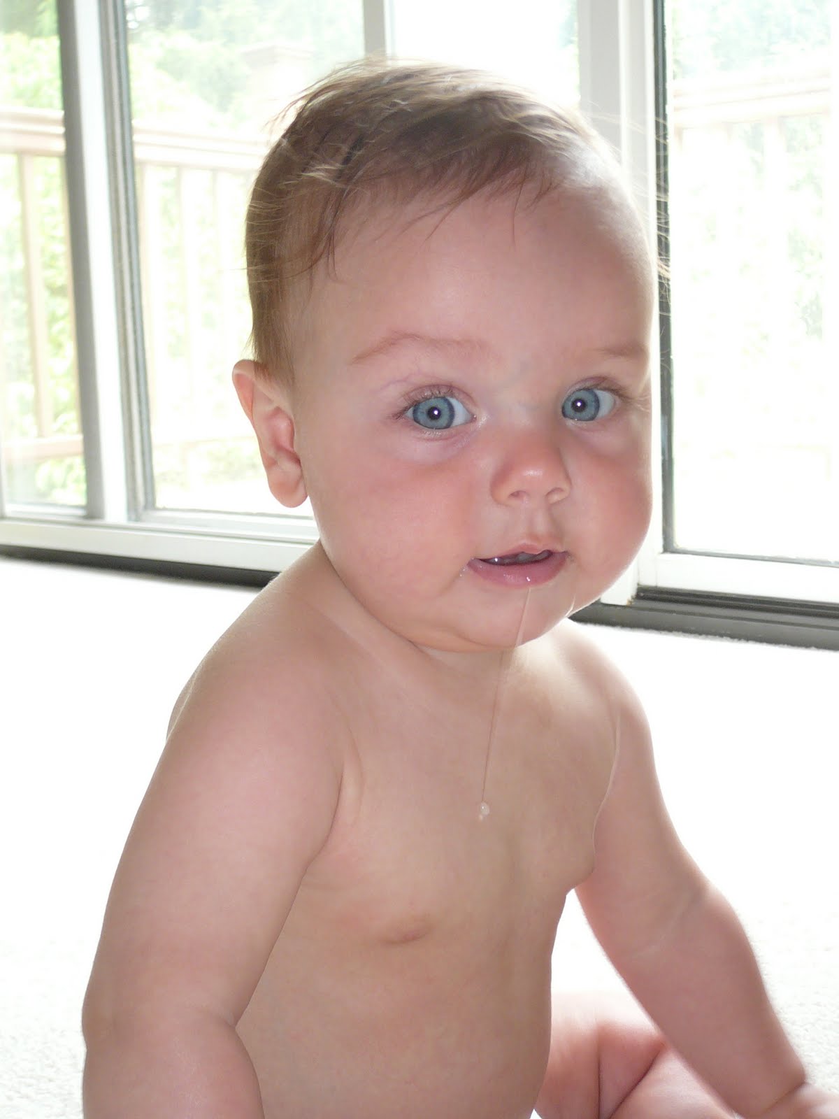 I wiped some of the paint off, but then walked up the stairs with Natalie held out straight in front of me. She started her bath with her diaper on!